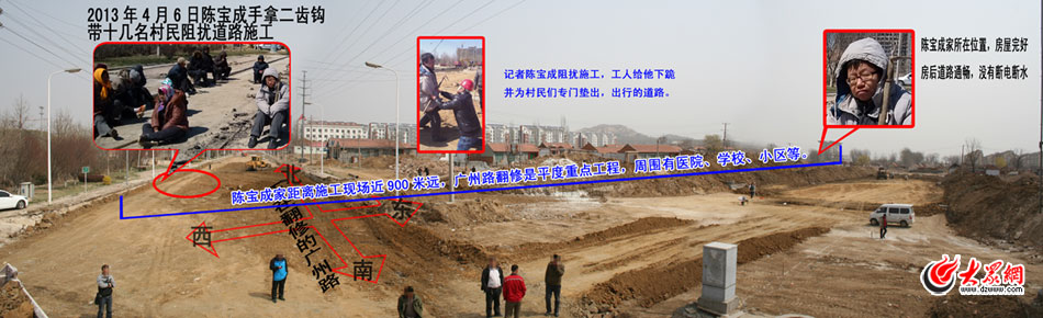 真實情況是,施工現場只是在修路,距離陳家近900米,根本沒有人拆他的房子。(圖片均來自現場目擊者微博)