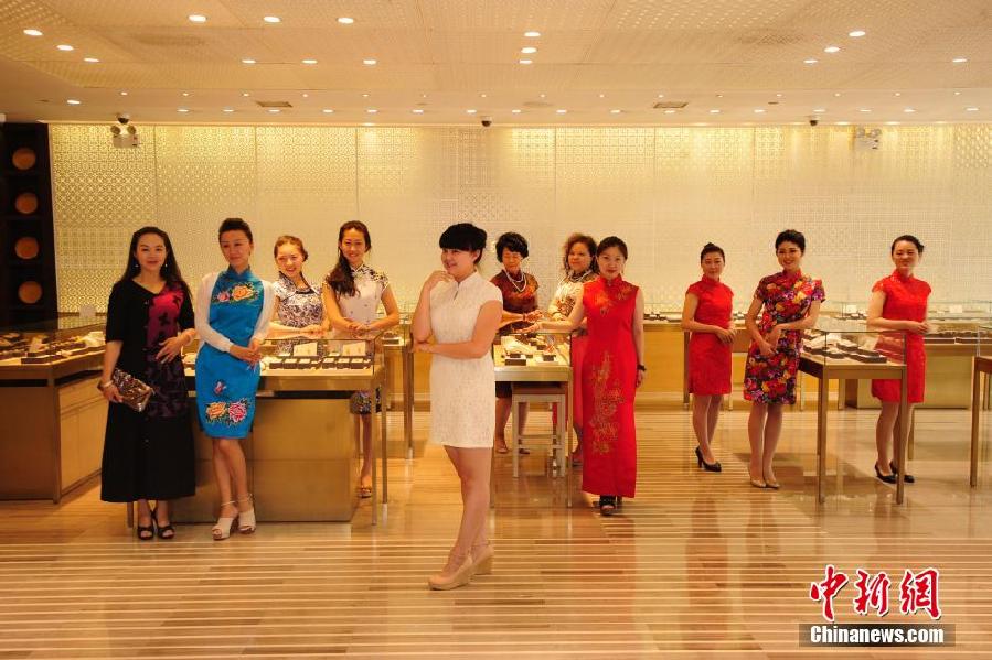 6月2日,山西太原,旗袍愛好者們進行快閃走秀。當日,山西太原十多位旗袍愛好者組織了一場“快閃”走秀,吸引了不少路人的注意。中新社發 張云 攝