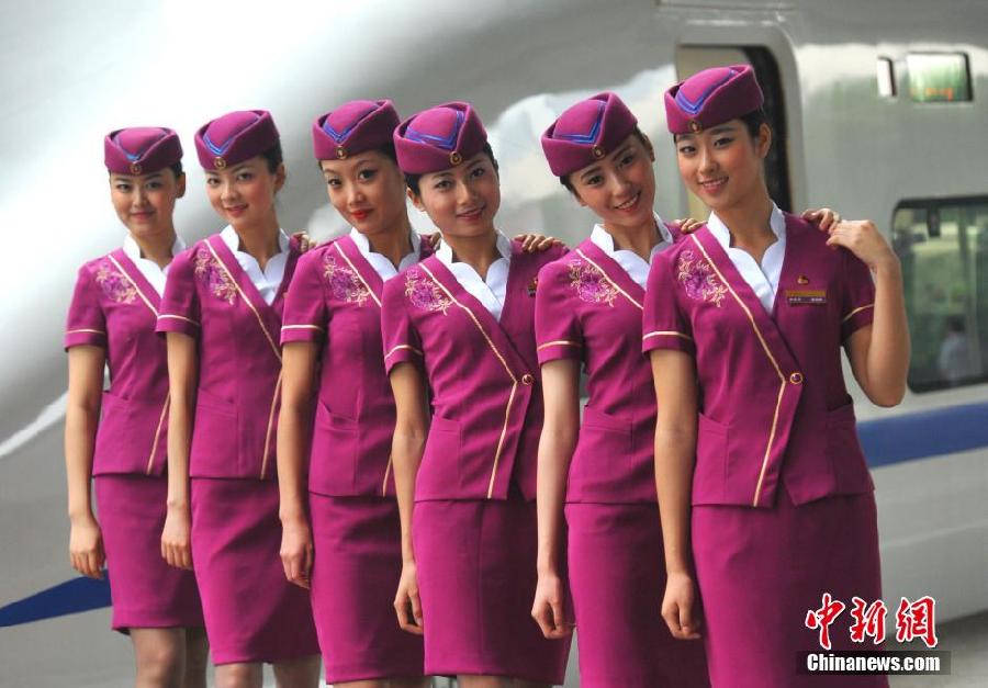 為迎接7月1日新列車運行圖的運行,成都鐵路局重慶客運段成渝動車組的乘務(wù)員換上新款夏季制服。新款夏季制服以紫羅蘭為主色調(diào),并繡有重慶市花山茶花。新款夏季制服從6月26日開始試穿,將于7月1日正式亮相。新華社記者李健攝
