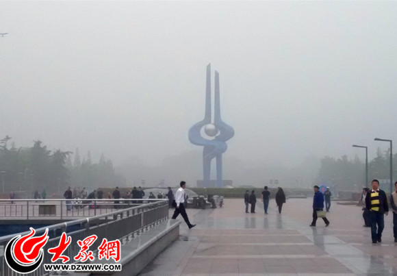 泉城廣場被大霧籠罩,不少市民在廣場上晨練 大眾網記者 張鵬 攝