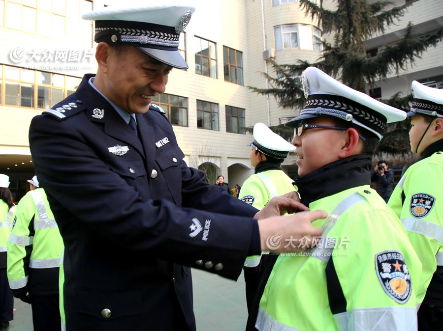 大眾網濟南1月11日訊(記者 賀輝)今天,濟南市市中區經五路小學的孩子們有了自己的交警隊——萌芽交警中隊,并成立了少年安全學院。小交警們在安全學院接受寓教于樂的交通安全培訓后,將在校安委會陪同下到學校周邊查糾交通違法,將家長的違法行為納入班級德育考評并在學校大屏通報。