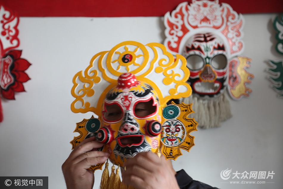 2017年8月1日,在山東濟南天橋區萬盛街社區,40多歲的侯志新師傅在家中掛忙了數百個候氏社火臉譜。稱自己十分喜歡癡迷畫社火臉譜,并且是第六代氏社火臉譜傳人,10余年時間在家中畫了有1萬余個社火臉譜,并且免費收徒都有千余名了。