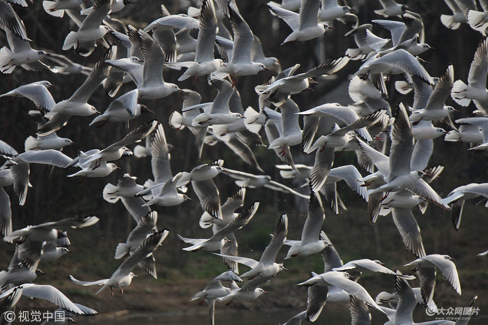 2018年4月2日,大批紅嘴鷗在青島中山公園人工湖飛翔。