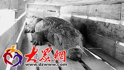 經過長途跋涉,這條鱷魚“大王”顯得很疲憊。 (趙國陸 攝)