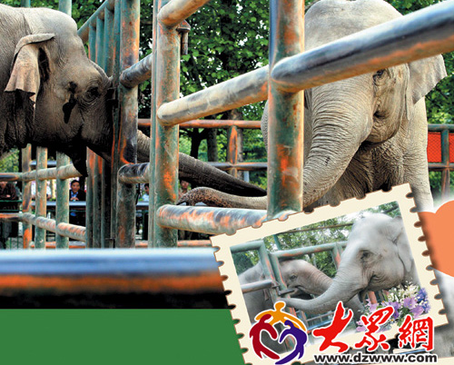 5月10日,北京動物園的27歲明星雌象麗婭(右)“長途跋涉”來到濟南動物園,與該園20歲的雄象亞昆成親。由于兩者初次見面,麗婭多少有點害羞,因此兩位“新人”還只是隔著欄桿相互接觸,培養(yǎng)感情。目前雙方感覺良好。 本報記者 周青先 攝影報道 | |