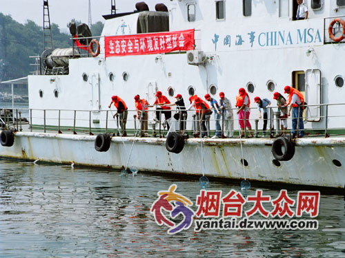 上午8時30分,煙臺海事局派出“海巡061”、“海巡0606”兩艘海事巡視執法船奔赴指定海域,22名志愿者開始對500余萬平方米海面漂浮的“白色垃圾”進行全面打撈。與此同時,煙臺第一職業中專等單位的90余名志愿者,對煙臺市第一海水浴場3200米沿岸沙灘及淺水區上散落的塑料袋、礦泉水瓶等垃圾逐一清除。經過百余名志愿者近3個小時的努力,共清垃圾730多件。