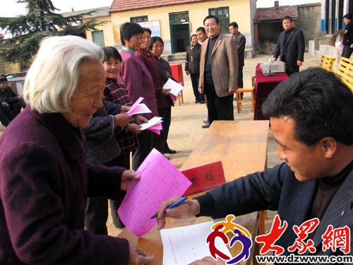 54歲的秦元花今天是全家一起出動(dòng),老伴、兒子、兒媳、女兒,一家就有五個(gè)選民。“看了村里發(fā)的選舉明白紙,知道可以委托投票,可俺家不行”,秦元花小聲的透露,家里對(duì)投哪位候選人的票意見并不統(tǒng)一,所以家里人都來了,“俺們還想比一比,到底誰支持的候選人得票高。”