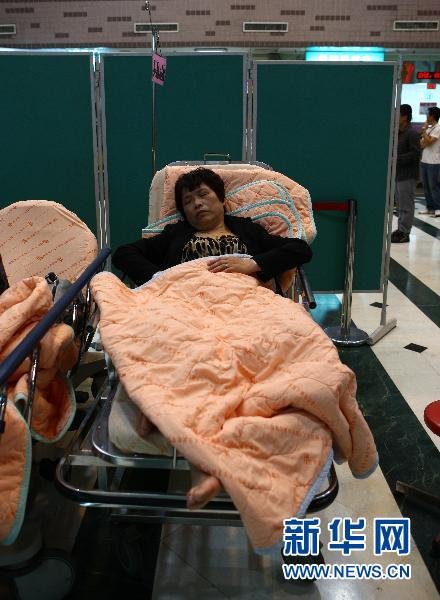 4月27日,一位在阿里山火車事故中受輕傷的浙江游客在臺灣嘉義市的圣瑪爾定醫院接受治療。 新華社記者 龔兵