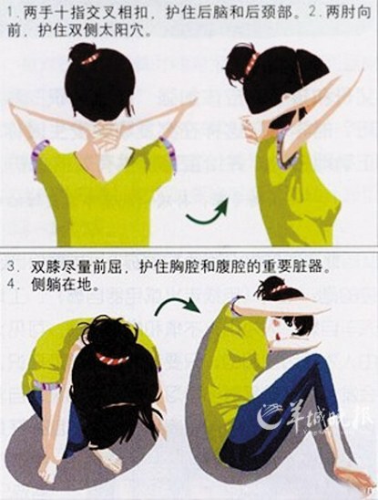 河北公安的微博“公安網(wǎng)絡(luò)發(fā)言人”第一時間發(fā)布微博,教網(wǎng)友已發(fā)生踩踏怎么辦?“重點是護(hù)住腦頸和胸腔腹腔。具體要點是:1. 兩手十指交叉相扣、護(hù)住后腦和頸部;兩肘向前,護(hù)住雙側(cè)太陽穴。2. 不慎倒地時,雙膝盡量前屈,護(hù)住胸腔和腹腔重要臟器,側(cè)躺在地。3. 在擁擠人群中,左手握拳,右手握住左手手腕,雙肘撐開平放胸前,形成一定空間保證呼吸。”