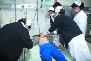 圖為醫(yī)護(hù)人員在搶救受傷學(xué)生。新華社發(fā)