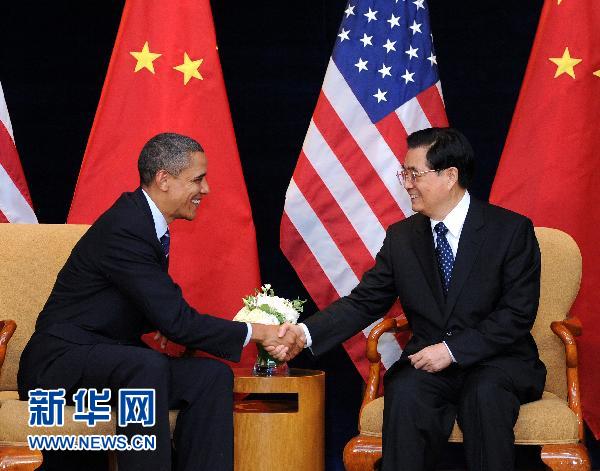 資料圖片:2010年11月11日,中國國家主席胡錦濤在韓國首都首爾同美國總統奧巴馬舉行會晤。新華社記者劉建生攝