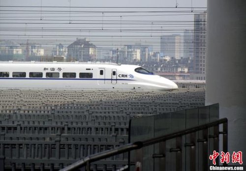 5月11日起,按鐵道部統一部署,京滬高鐵將進入為期1個月的運行試驗階段。試運行期間,京滬高鐵將以實際列車運行圖為基礎,進行列車運行試驗。據悉,京滬高鐵預計6月底正式開通。圖為5月8日,京滬高鐵南京南站,一列試跑中的和諧號動車組進站。中新社發 安東 攝 CNSPHOTO
