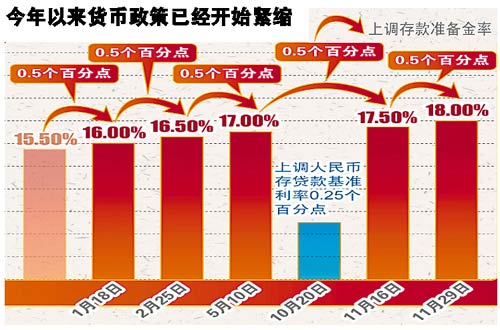 燕京華僑大學(xué)校長、長期研究中國資本市場的華生昨天在接受本報記者采訪時說:“中央政治局工作會議關(guān)于穩(wěn)健的貨幣政策的提法首次明確了我國貨幣政策的轉(zhuǎn)向,從之前的適度寬松轉(zhuǎn)向了穩(wěn)健。雖然從去年年底的信貸緊縮到今年的加息等一系列政策說明貨幣政策已在做較危機(jī)之前的收緊,但高層一直沒有對這種新的貨幣政策有一個基調(diào)上的改變。現(xiàn)在提法改變了,這意味著貨幣政策將是系統(tǒng)性、持續(xù)性的穩(wěn)健或說是收緊。接下來就看具體貨幣政策的落實(shí)了,加息及存款準(zhǔn)確金率的提高空間都將增加。”