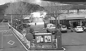 電視截圖顯示的是韓國西部延坪島上遭到炮擊的瞬間。