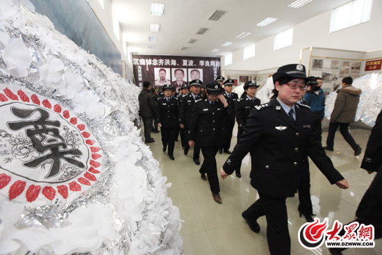 泰山南麓,哀樂聲鳴。從今天上午8:30起,泰安市全體公安民警在泰安市革命烈士陵園革命展覽館舉行悼念活動。泰安市市民及社會各界人士數千人手捧鮮花,也來到革命展覽館,深切緬懷在“1.04”襲警案件中殉職的兩名民警和一名協勤。稍后大眾網將帶來詳細報道。